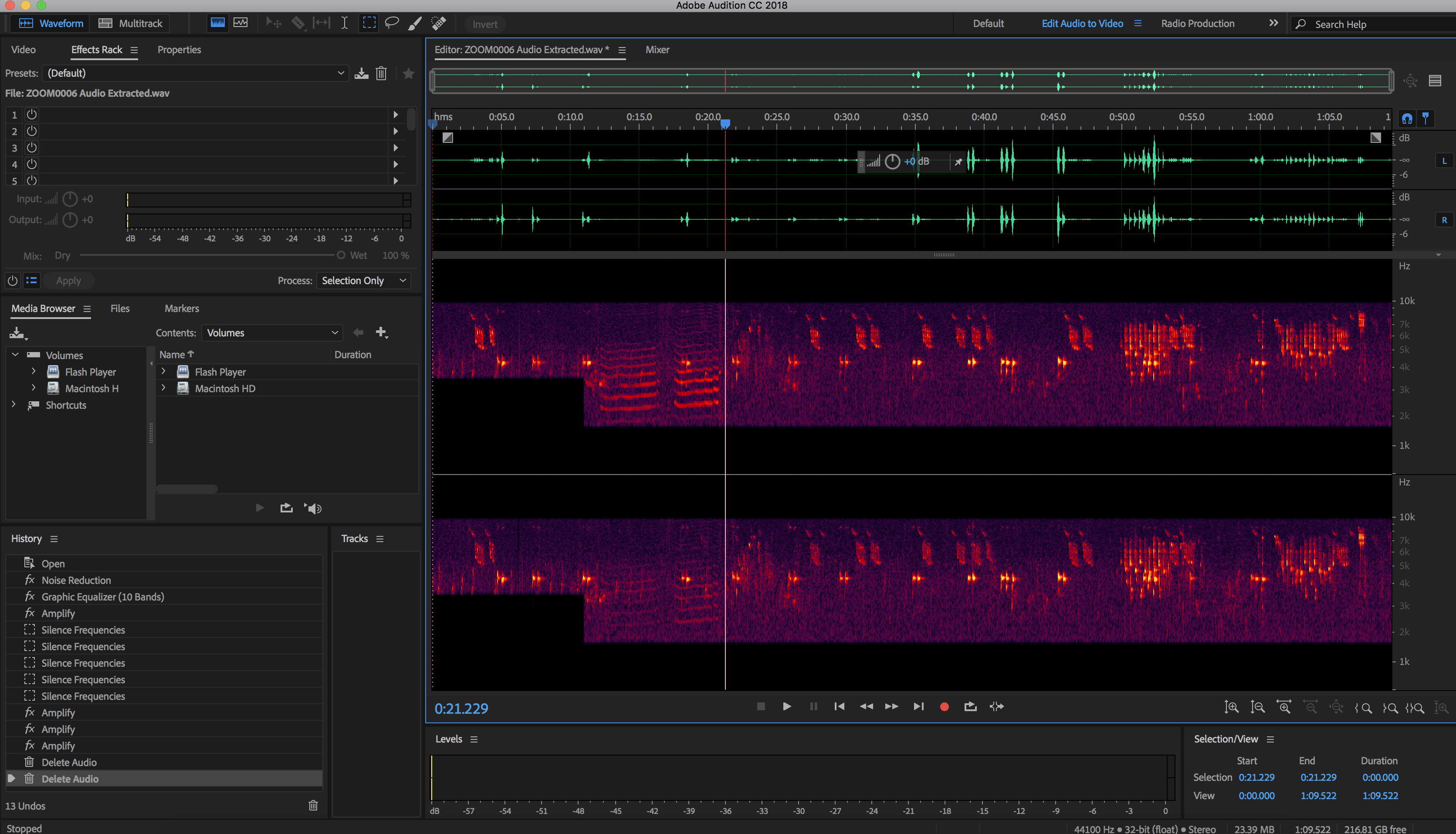 Selective audio frequency edits and a few passes of noise reduction