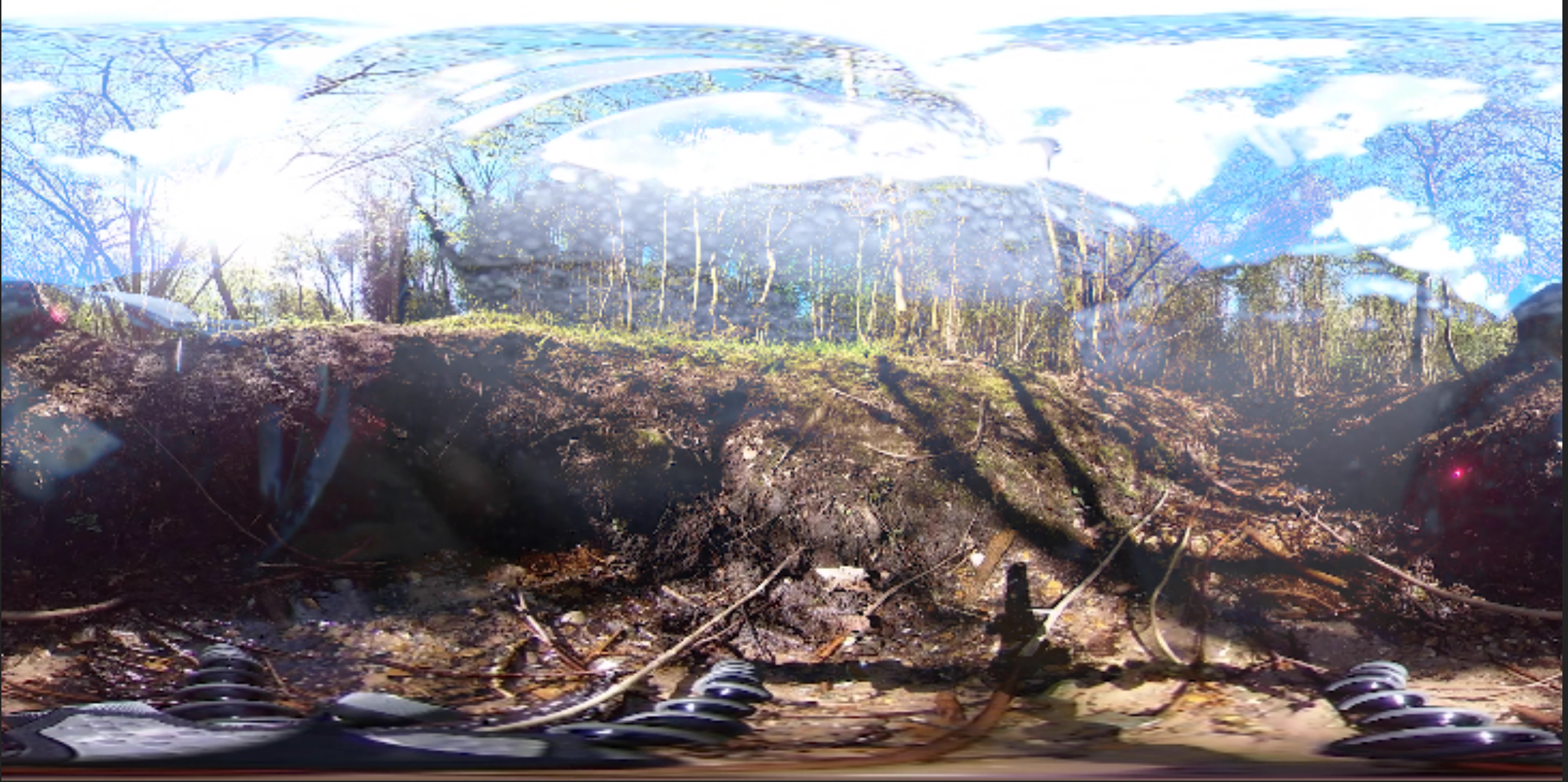 When chatting to someone (sorry can’t remember who) last week about the 360 edits that I had experimented with there was discussion about hiding the tripod by mirroring the footage. I thought that might be interesting with the forest footage that already has a very repetitive pattern.